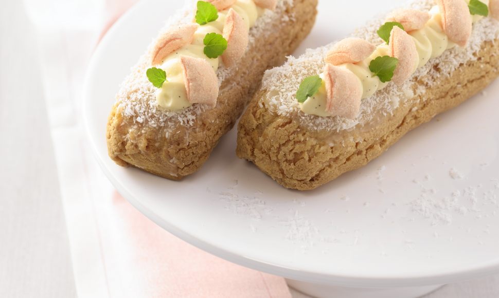 Des éclairs gourmands au fruit de la passion, à la mangue et à la noix de coco pour voyager sans bouger de chez soi.