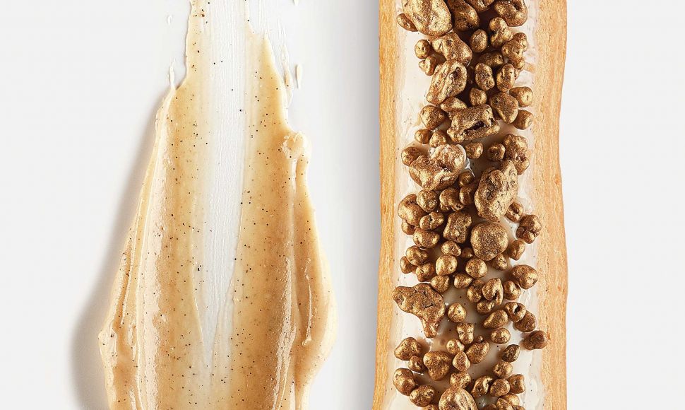 Mettez la gélatine à tremper dans l’eau froide. Faites bouillir la crème avec le sirop de glucose, puis incorporez les gousses de vanille fendues et grattées. Hors du feu, incorporez la gélatine, couvrez la casserole de film alimentaire et laissez infuser 20 min.