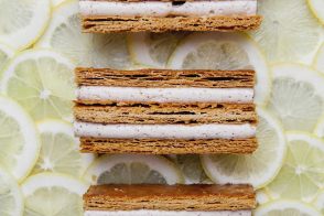 Lorsque la pâte est homogène, laissez-la reposer 1 h à température ambiante. Mettez-la dans une poche munie d’une douille «petit-four » n° 18. Pochez des bandes de 38 cm de long sur une plaque recouverte de papier sulfurisé, en veillant à appuyer régulièrement sur la poche pour ne surtout pas affiner la pâte. Entreposez 30 min au congélateur, puis détaillez des éclairs de 12cm de longueur à l’aide d’un grand couteau type couteau à fromage.