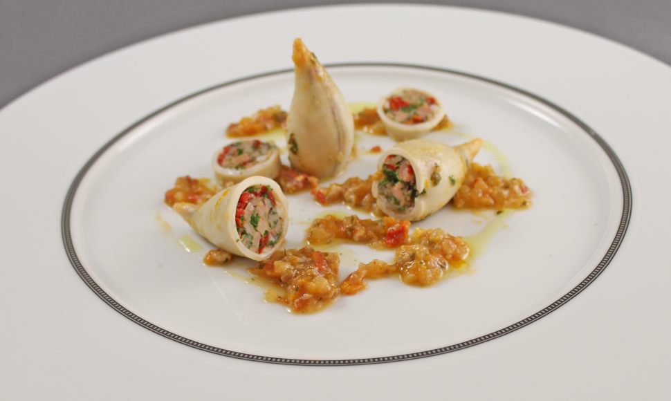 Les recettes d’encornets farcis fleurissent sur tout le pourtour de la Méditerranée. La recette classiquement pratiquée à Sète montre la rencontre entre l’apport des immigrés italiens de ce port et les pratiques locales. Nous nous sommes inspirés de celle de Jacques Rouré dans ses Recettes sétoises et de Bouzigues publiées à Barbentane en 1995 en la relevant de pimientos.