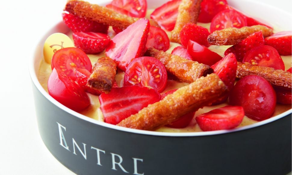 « Une émotion à partager ». C’est une composition dont l’onctuosité de la crème de mascarpone à l’huile d’olive, ponctuée de morceaux d’olives noires séchées atteint une sorte de paroxysme difficile à décrire… mais qu’il faut partager à plusieurs ! La pâte feuilletée est rendue croustillante par une cuisson très poussée tandis que le goût de tomate lui donne une réplique étourdissante.