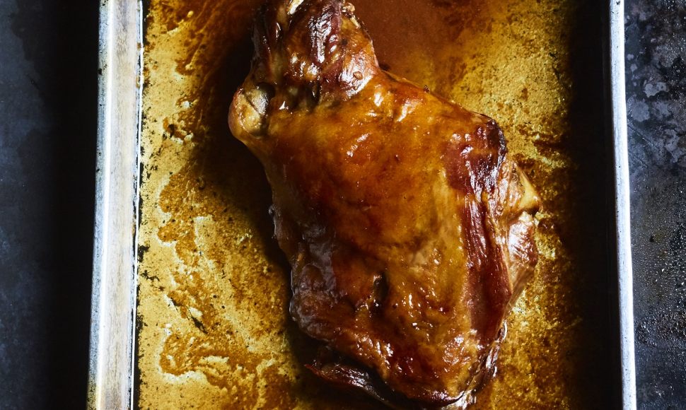 Au bout de 5 heures, vérifiez la cuisson avec la pointe d’un couteau : elle doit entrer sans aucune résistance dans la chair de l’épaule.