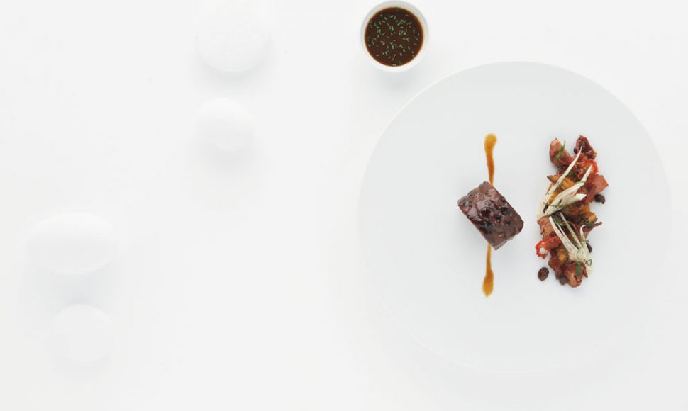 Epaule d’agneau cuisinée 36 heures parfumée poivre/citrolive, jus corsé-acide, fenouils et souris d’agneau façon tagine