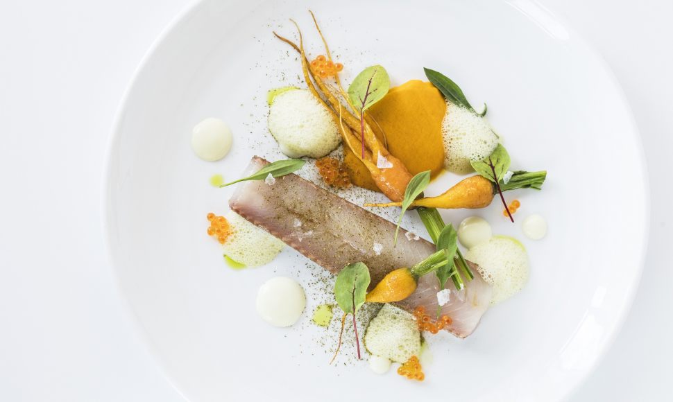 Le fondant de la chair du fera, le croquant des mini-carottes, l'onctuosité de la mousseline de carottes et la sauce Chichin Bergeron : une recette exquise signée Gaëtan Gentil.