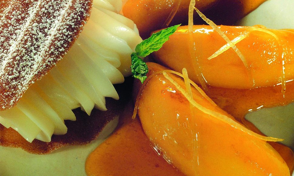 Feuillantine glacée au lait d'amande et aux pommes confites