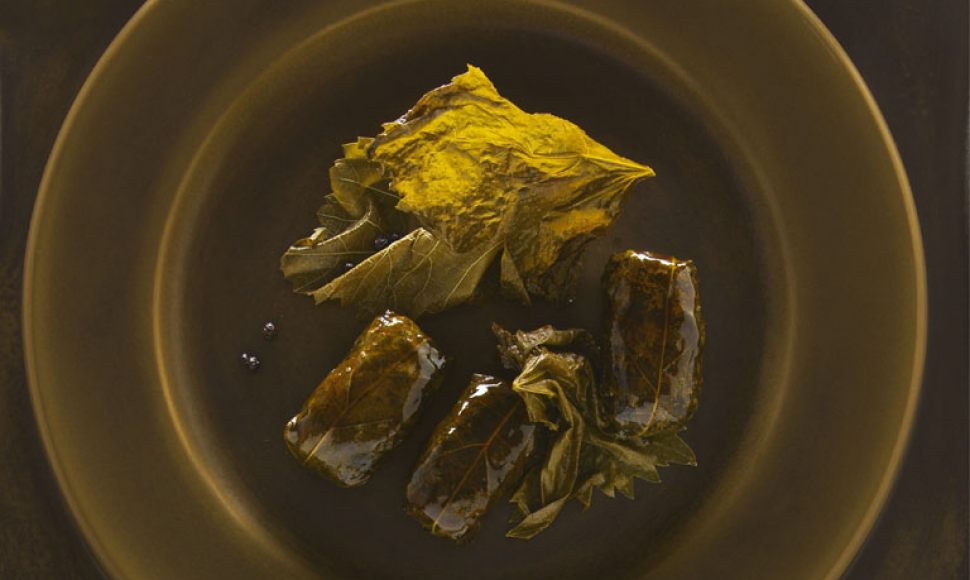 Laver les feuilles de vigne. Les plonger 30 secondes dans une casserole d’eau bouillante salée. Les refroidir aussitôt dans de l’eau glacée. Les égoutter. Les éponger sur un papier absorbant. Réserver.