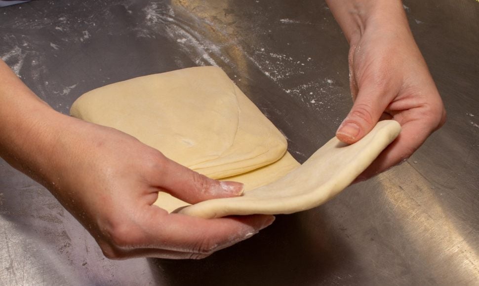Sortez la pâte du bol, puis terminez le pétrissage à la main, jusqu’à l’obtention d’une boule de pâte bien ferme. Enveloppez-la dans du film alimentaire, puis laissez-la reposer au réfrigérateur pendant 2 h.