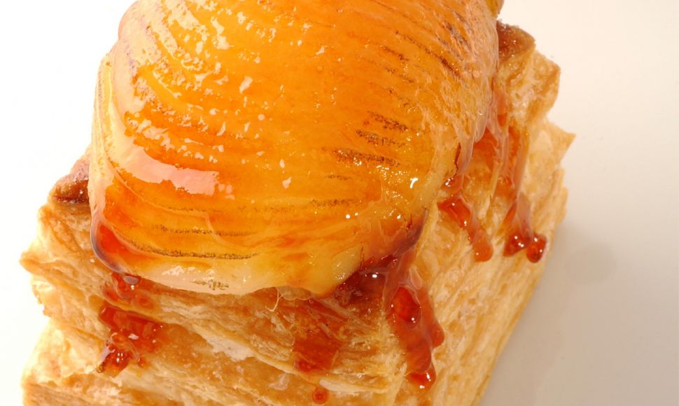 Feuilleté aux poires caramélisées, crème williamine, façon Michel Guérard