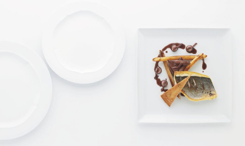 Filet de daurade royale, salsifis rôtis, matelote au vin rouge