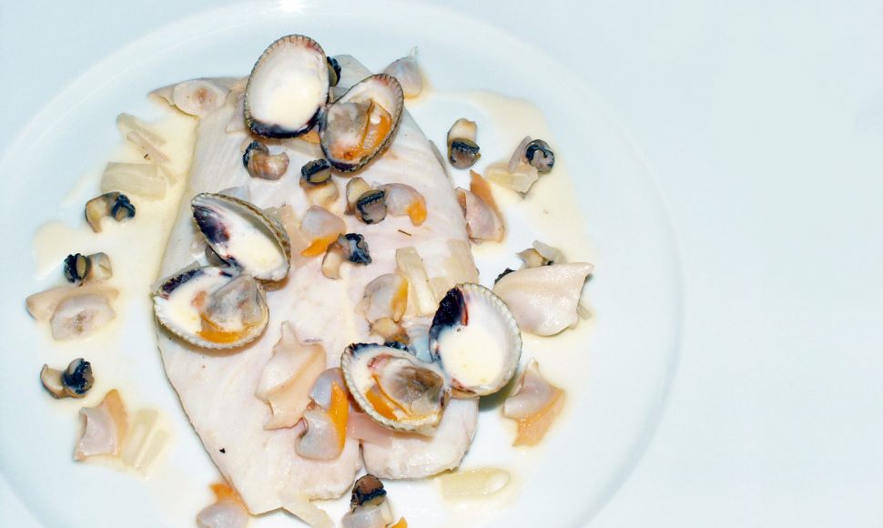 Filet de saint-pierre aux algues, coquillages liés de beurre demi-sel
