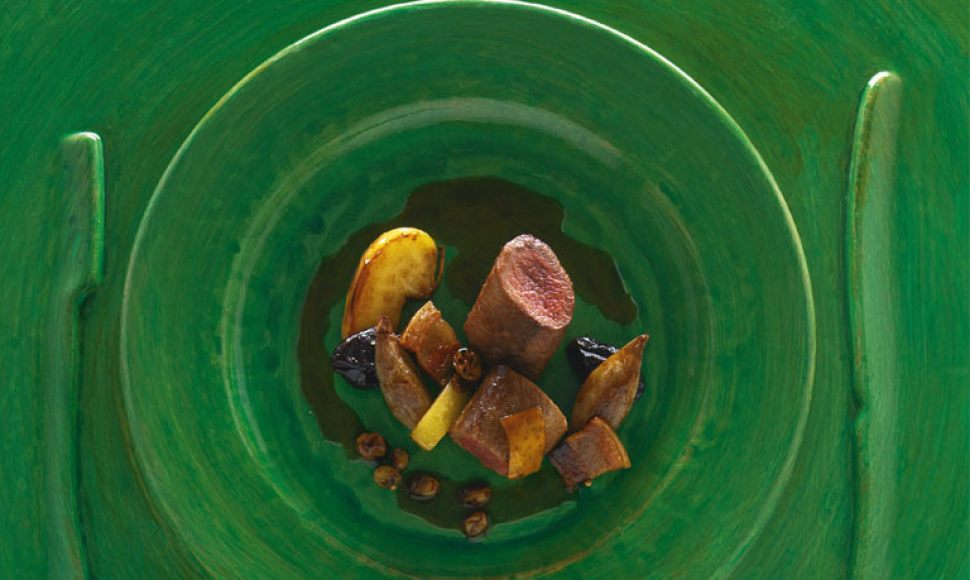 À partir du « Cinghiale con le prugne », plat toscan, et du « Cinghiale in agrodolce », issu de la cuisine du Latium, nous avons imaginé un autre plat de sanglier, mêlant les produits les plus caractéristiques de ces deux recettes.