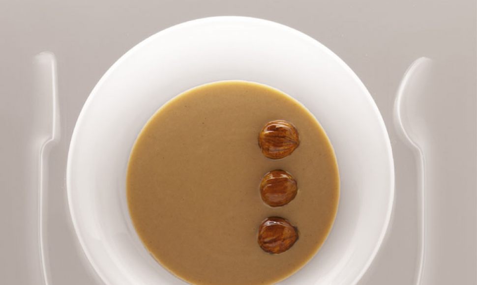 Les châtaignes ont nourri pendant des siècles les habitants des montagnes du sud de l’Europe jusqu’aux bords de la Méditerranée. Et maintenant, hélas, nombre de châtaigneraies sont à l’abandon. Nous aimons la douceur onctueuse de ces fruits mariée avec un énergique bouillon de faisan.