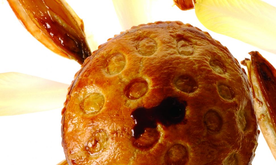 Fine tourte blonde de vrai lapin de garenne, un jus-sauce civet, quartiers d’endives rôtis