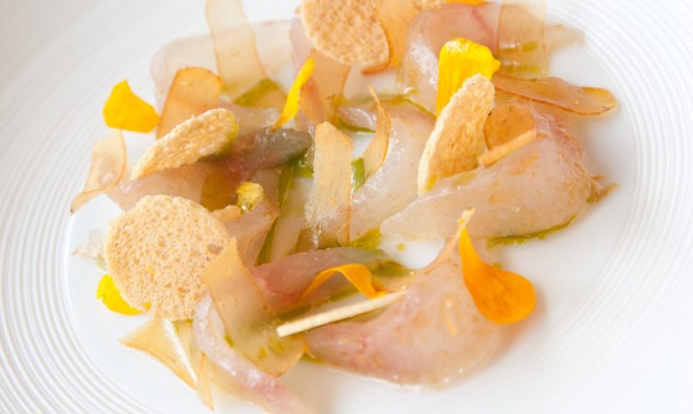 Fines tranches de mulets noirs, poutargue râpée, citron, basilic