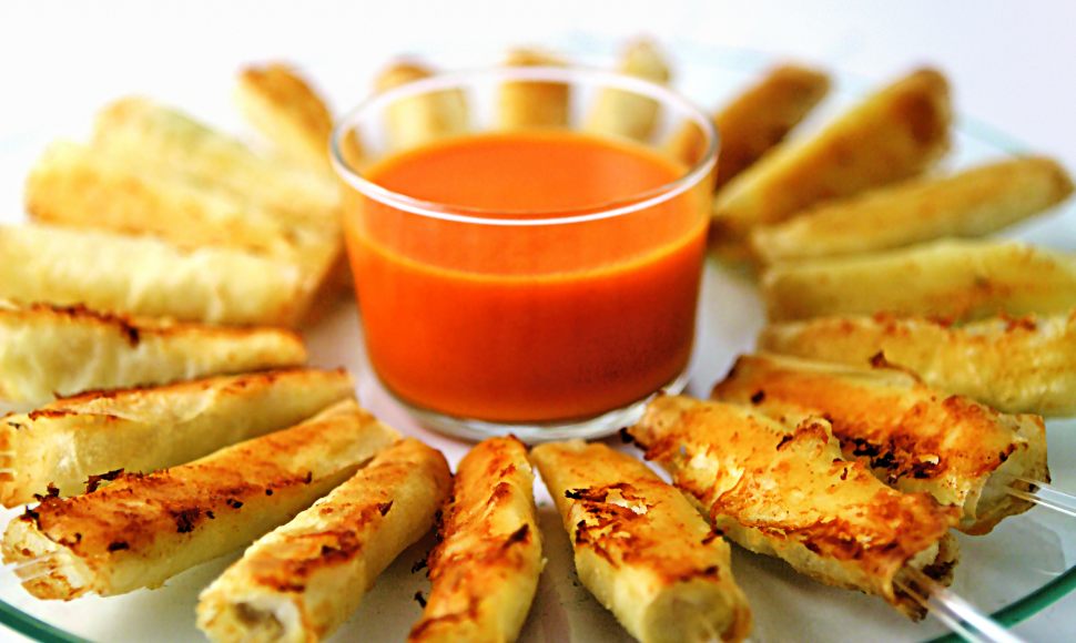 Découvrez une façon originale de préparer des queues de cabillaud avec cette recette de fingers de cabillaud jus de poivron. Grâce au pas à pas, apprenez à réaliser un savoureux jus composé de poivrons, tomates, oignons et thym, un beurre clarifié et des bâtonnets réguliers de poisson que vous ferez cuire dans des feuilles de brick, avant de les servir en brochettes.