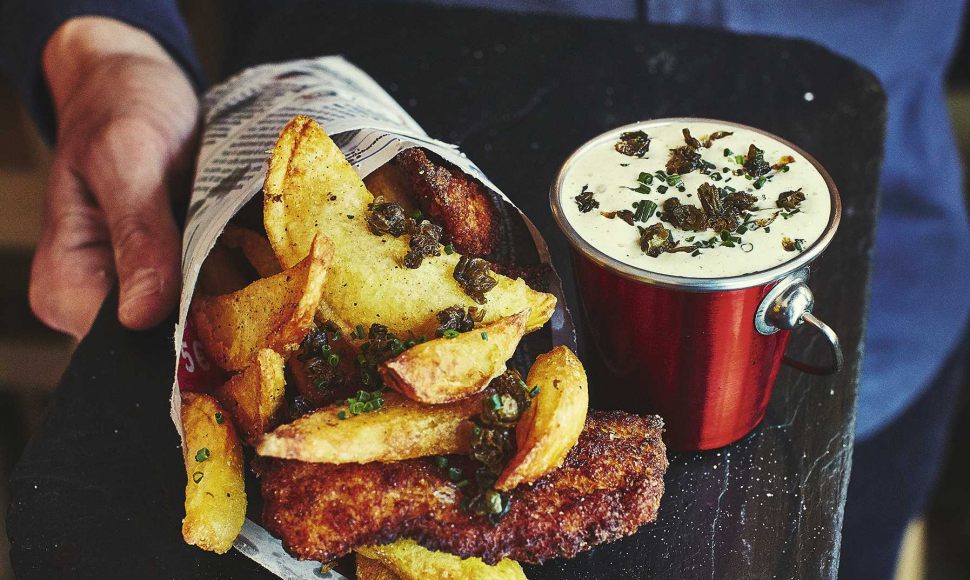 Un standard de la street food britannique revisité en y ajoutant une touche française, de la mayonnaise faite maison, une sauce tartare et du vinaigre.