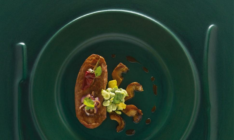 Libre interprétation d’une recette marocaine de « foie de veau aux herbes » où celui-ci, coupé en petits morceaux et fariné, est frit. Nous avons gardé les épices et la coriandre et ajouté une garniture d’artichauts et de fèves.