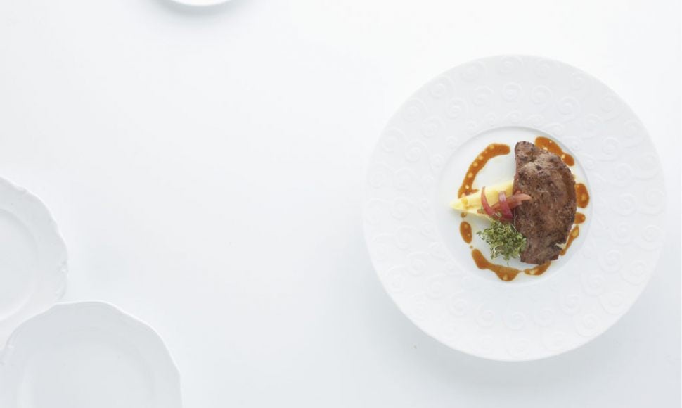Foie de veau poêlé, pommes écrasées, sauce dolce forte