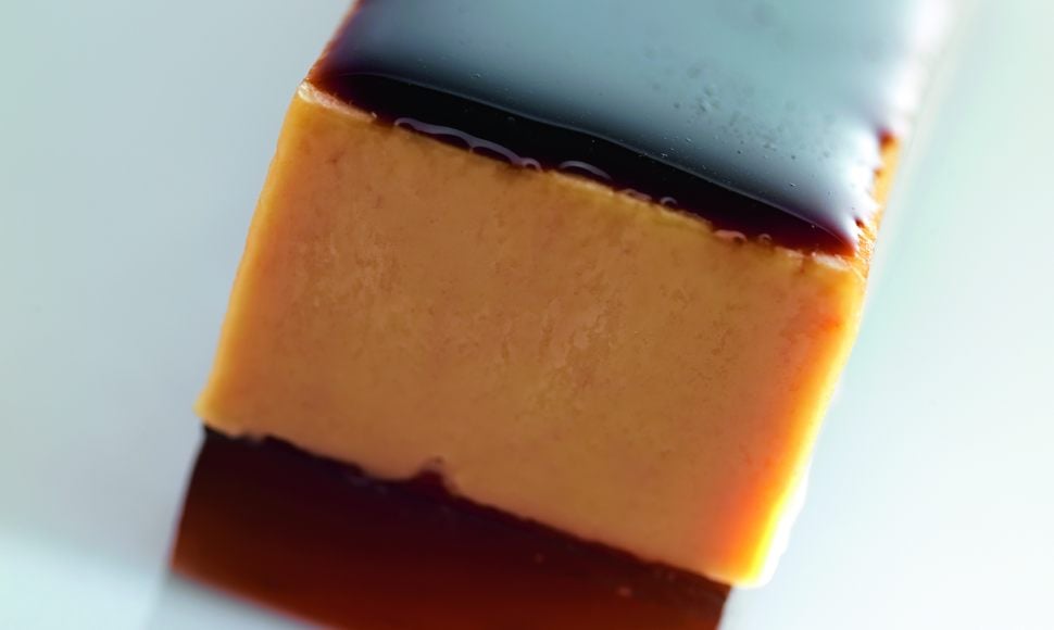 Dans cette recette, le chef Marx fait une réinterprétation du traditionnel morceau de foie gras assaisonné de sel et de poivre. Délicatement posé sur une gelée de pêches parfumée au porto blanc, le foie gras juste poêlé se retrouve surmonté d'une fine couche d'émulsion au porto rouge. Ce foie gras surmonté d'une gelée de pêches