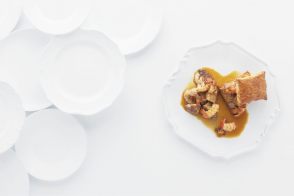 Pendant ce temps, retirer le pied des morilles. Laver les têtes dans plusieurs eaux tièdes jusqu’à ce que toutes traces de sable soit éliminées. Les sécher sur un linge sec. Couper en 2 celles qui sont trop grosses. Laver les oignons, les éplucher. Couper la partie verte et dure des tiges, ciseler le reste et le réserver dans un petit bol. Tailler les bulbes en rouelles. Les réserver séparément. Eplucher, dégermer et émincer les gousses d’ail rose. Rincer, sécher, effeuiller et ciseler le persil. Les réserver séparément.