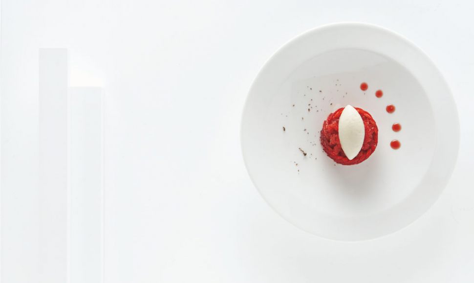 Fraise à la fraise, sablé breton, sorbet à la fève tonka