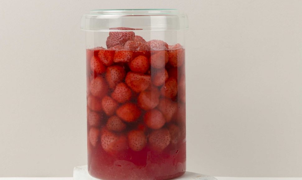 Retournez le bocal, puis réservez au frais 2 autres semaines. Menez cette opération régulièrement et laissez vieillir. Plus le bocal sera vieux, plus les fraises seront douces.