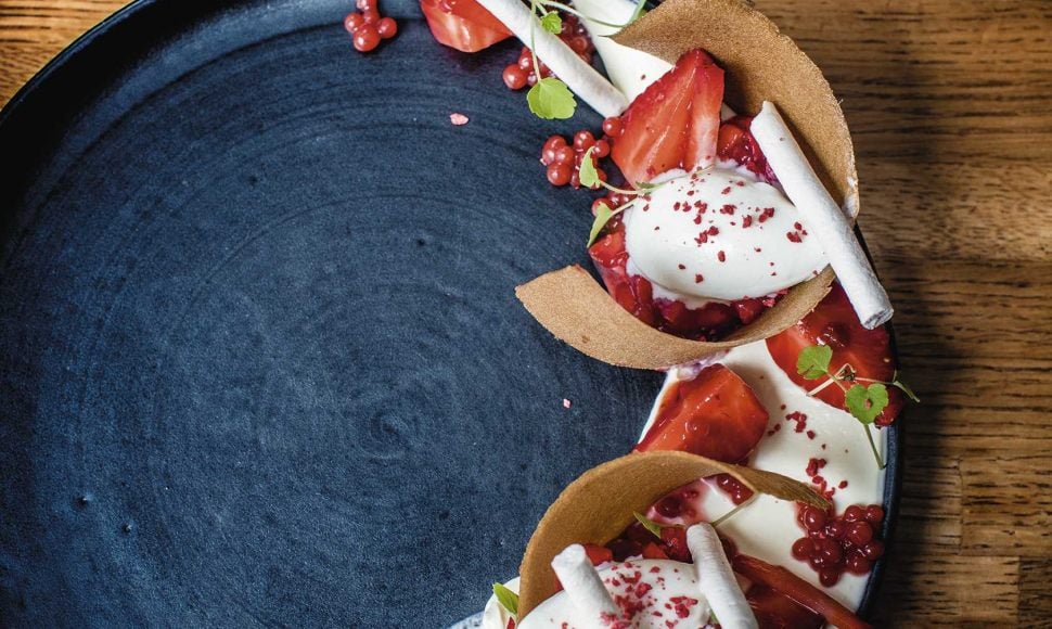 Des sensations gustatives étonnantes, à travers la note acidulée des billes de fraise, le croustillant de la tuile, l'onctuosité de la crème mascarpone et la fraîcheur lactée du sorbet au fromage blanc.