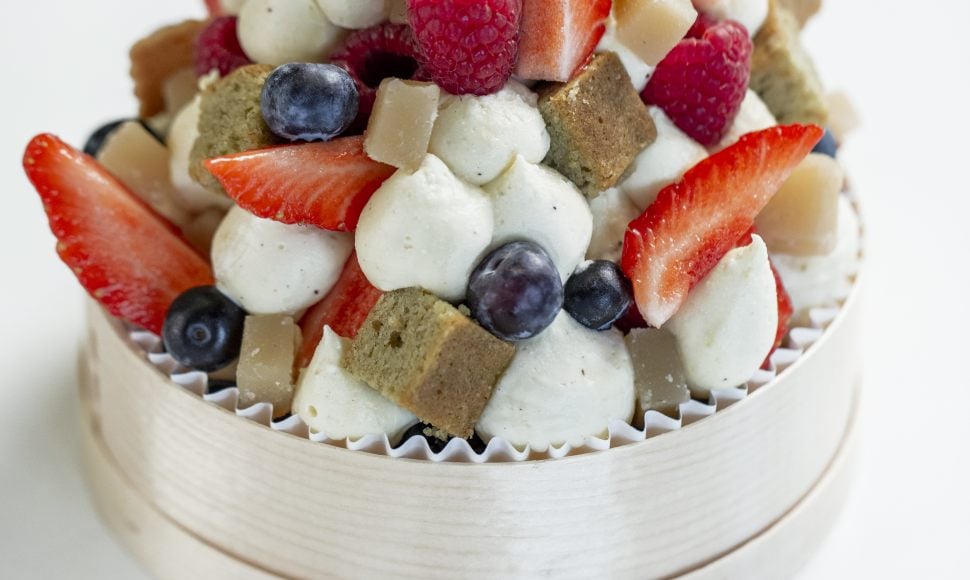 Prenez un fraisier, déstructurez ses éléments, replacez-les dans une jolie caissette de manière subtilement désordonnée. Vous obtiendrez une montagne de plaisir !