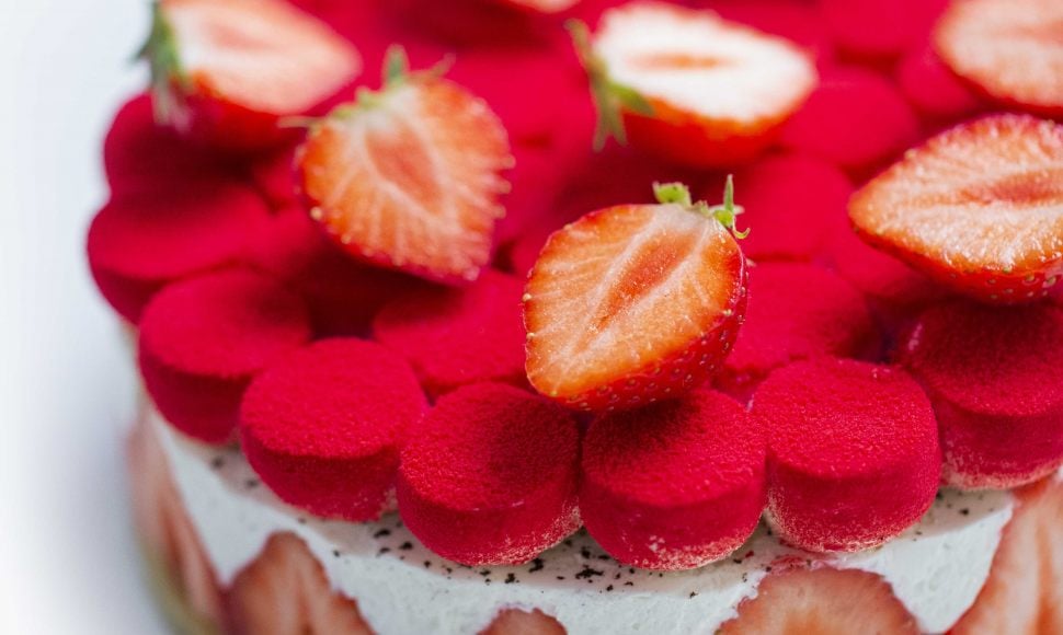 Un grand classique de la maison Stohrer revu avec élégance par le chef pâtissier Jeffrey Cagnes : une ganache montée légère, un biscuit à la pistache, une crème d'amandes et des fraises fraîches.