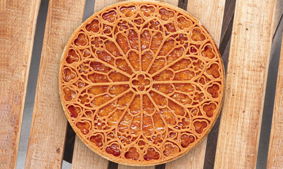 La cheffe, originaire de La Rochelle en Charentes-Maritimes, s'est tournée vers le beurre Charentes-Poitou AOP pour réaliser cette galette des rois aux notes délicates de cannelle, qui rend hommage aux vitraux de la cathédrale Notre Dame de Paris.