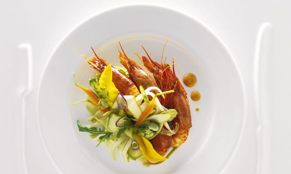 Décortiquer les queues en gardant les têtes et en laissant la dernière partie de la carapace accrochée sur la queue. Réserver au frais.
