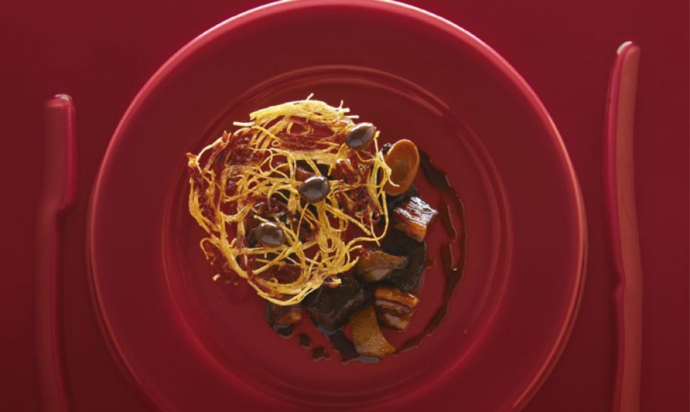« Gardian » ou « gardiano » est le nom provençal d’un homme qui, en Camargue, garde les taureaux. Ce terme est également utilisé en cuisine depuis au moins le XVIIIe siècle pour désigner une préparation de viande ou de poisson cuit à l’étouffée, avec une sauce au vin rouge. La viande de bœuf est habituellement utilisée pour cette recette. Nous nous sommes inspirés de celle d’Eugène Blancard dans ses Mets et produits de Provence publiés à Toulon en 1927.
