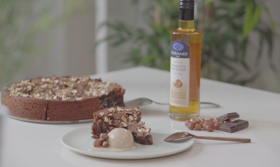 Indétrônable symbole du goûter et de l'enfance, ce gâteau au chocolat s'avère tout à fait spécial : il est doppé aux noisettes. Les notes boisées de l'huile vierge de noisette s'avèrent aussi intenses... que son parfum gourmand. Pas de beurre donc, mais une texture fondante irrésistible apportée par la pâte de noisettes. Mise en garde : gâteau qui rend accro.