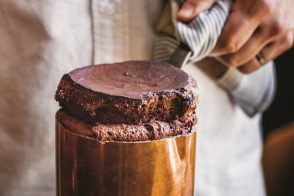 Faites fondre le chocolat coupé en morceaux avec la crème au four à micro-ondes à puissance maximale pendant 1 min 30. Ajoutez l’extrait de café et mélangez bien. Laissez refroidir.