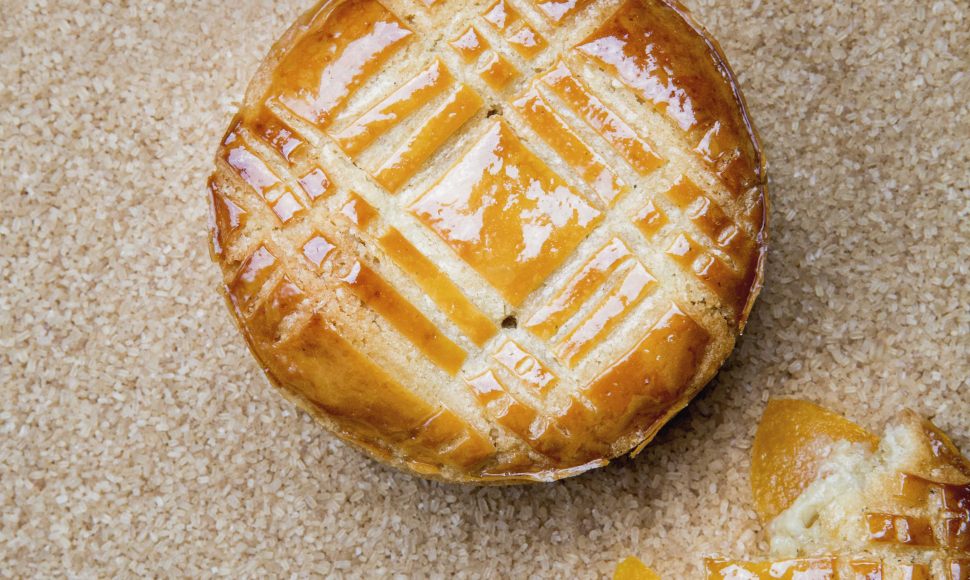 Découvrez la recette du gâteau basque aux kumquats pochés de Cédric Grolet, avec une crème pâtissière à l'orange et une délicieuse crème amande - citron vert.