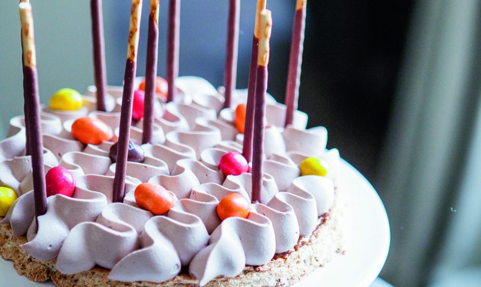Un gâteau d'anniversaire qui fera plaisir aux enfants, on y ajoute des M&M's® et Mikado® pour toujours plus de gourmandise.