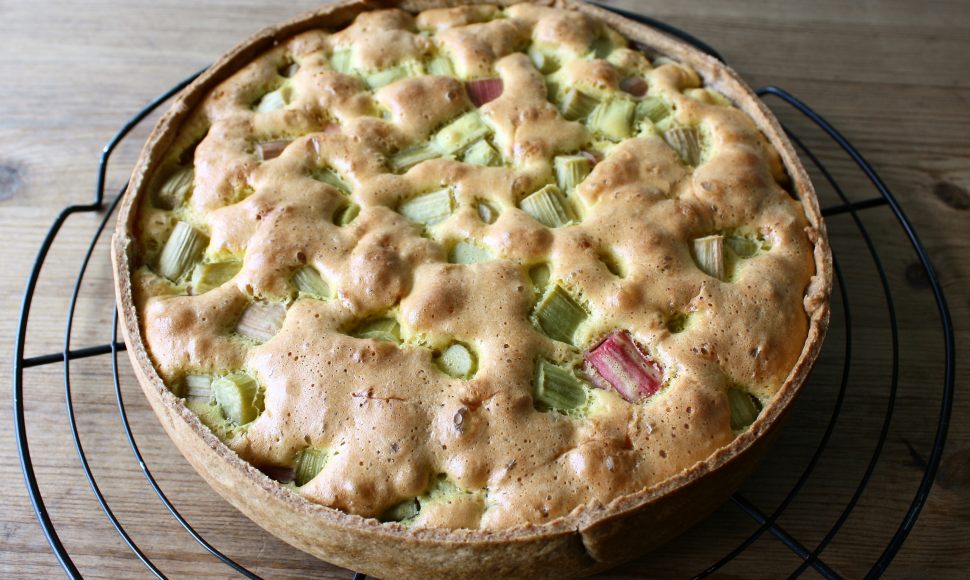 Verser la préparation sur la rhubarbe puis enfourner pendant 40 à 45 minutes.