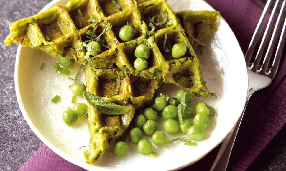 Pour jouer ton sur ton, servez les gaufres avec des petits pois frais tièdes et des feuilles de menthe ciselées.