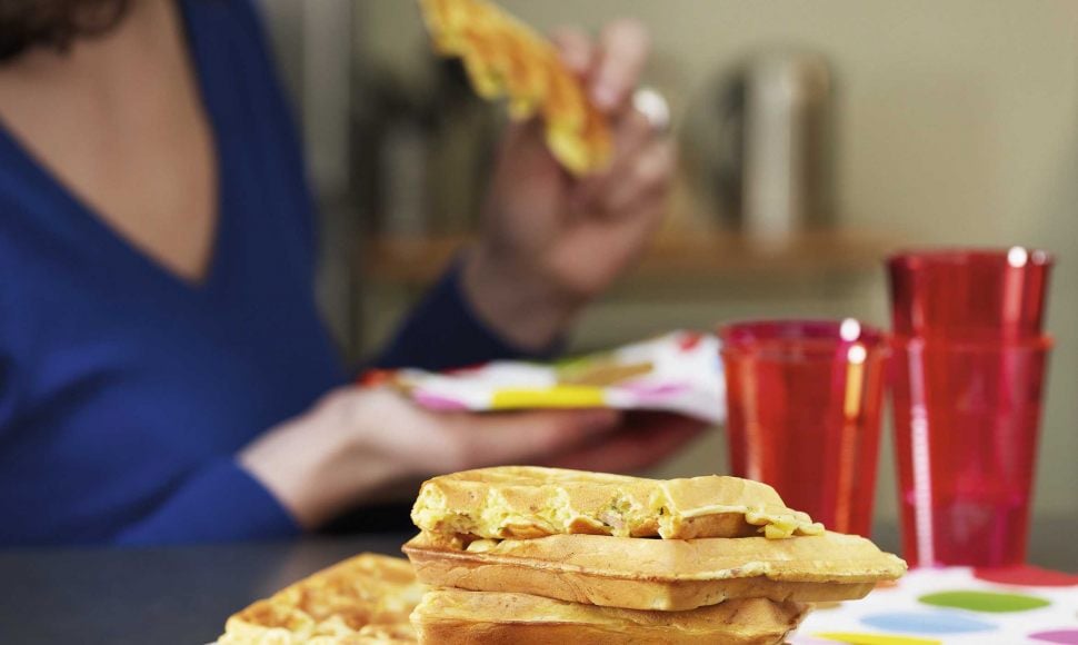 Des gaufres salées au parmesan, jambon cru et basilic, idéales en brunch ou pour un encas.