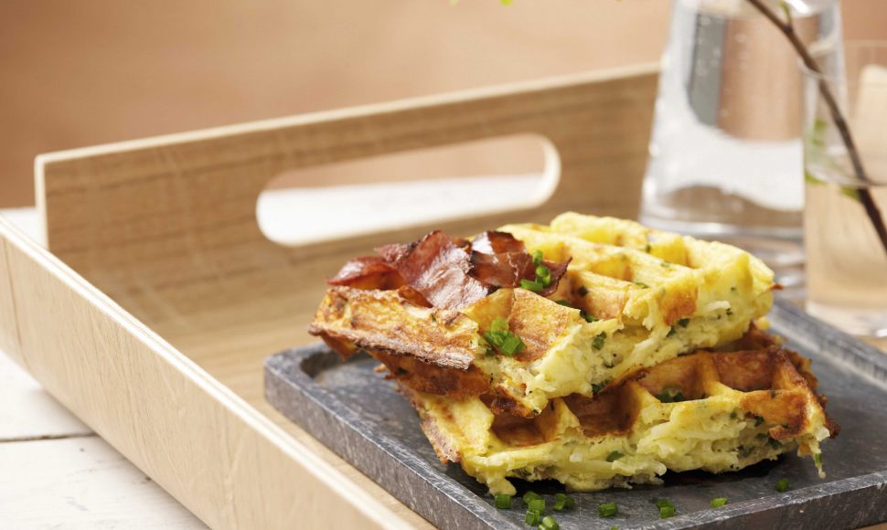 Des gaufres salées au bons produits montagnards ; pommes de terre, jambon cru et reblochon.