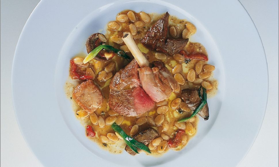 Gigot d’agneau de tende à la broche, vrai jus parfumé à la sauge, ragoût d’abats façon rustique
