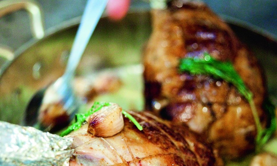 Gigot d’agneau de lait des pyrénées, bouquetière de légumes primeurs, vrai jus