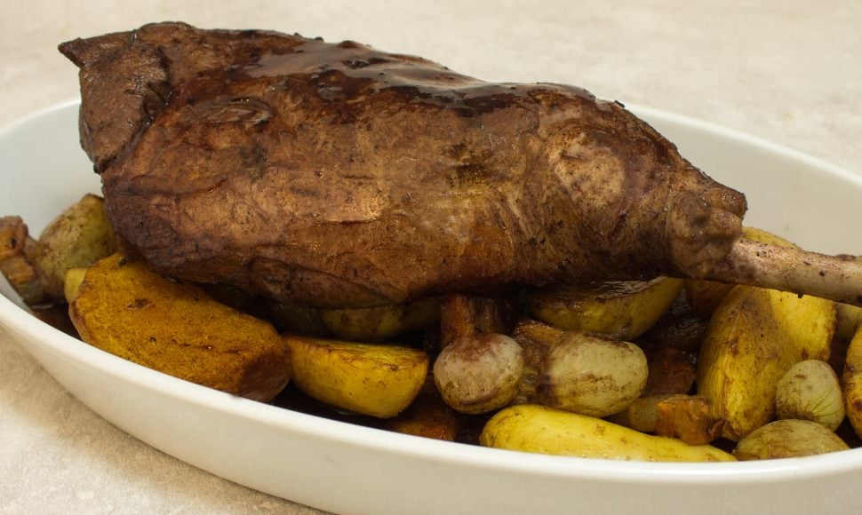 Ce gigot ne manque pas de mordant. Piqué aux anchois, mariné et cuit dans du vin rouge, il regorge de saveurs. Avec des pommes de terre, des lardons et des oignons grelots en accompagnement, vous aurez de quoi régaler une grande tablée !