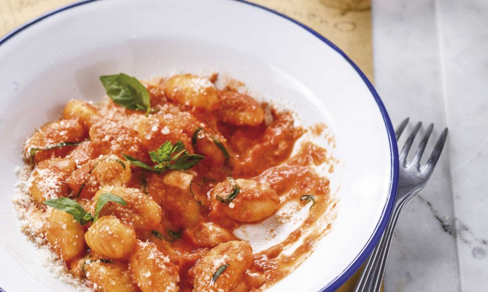 Recette de gnocchi à la sauce arrabbiata à base de sauce tomate, piment séché et de basilic.