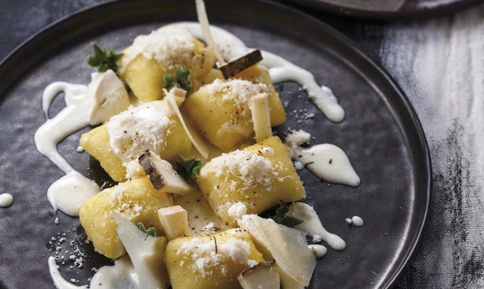 Un plat de gnocchi de pommes de terre faits maison aux quatre fromages : grana padano, gorgonzola, taleggio et scamorza.