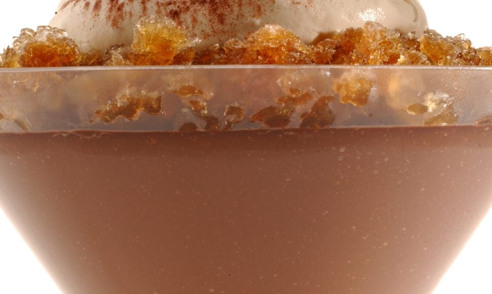 Granité de chocolat amer aux paillettes de café arabica en cappuccino au goût de chicorée