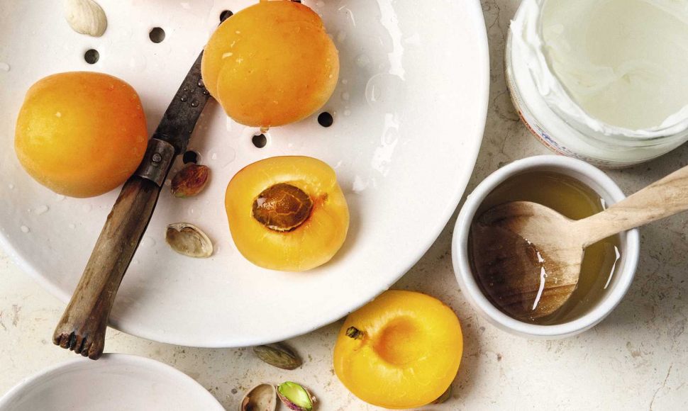 Mélangez la crème et le miel, et coulez le tout sur les abricots en étalant bien.