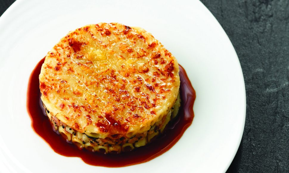 Gratin de macaronis aux truffes, au celeri et au foie gras