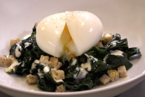 Laver, essorer et équeuter les épinards. Eplucher et dégermer la gousse d’ail et la planter sur une fourchette. Chauffer un sautoir avec un filet d’huile d’olive et y faire tomber les épinards en les remuant avec la fourchette piquée d’ail. Les saler légèrement. Les égoutter dans une passoire. Puis les déposer dans un saladier et leur ajouter la ricotta. Bien mélanger et rectifier l’assaisonnement.