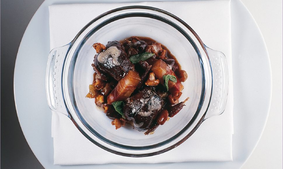 Filtrer le jus à l’aide d’un chinois étamine sans le fouler, puis le porter à ébullition, lier avec les abats et le foie gras hachés, et rectifier l’assaisonnement.